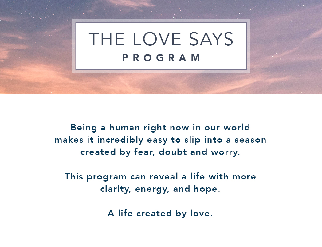 No matter what is going on in the outside world, the Love Says Program will keep us returning to our inner call, our intuitive steps forward, and the creations within us ready to be born.